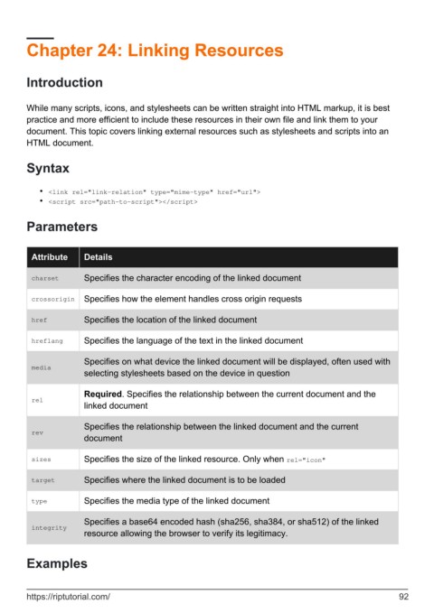 document. This topic covers linking external resources such as stylesheets and scripts into an