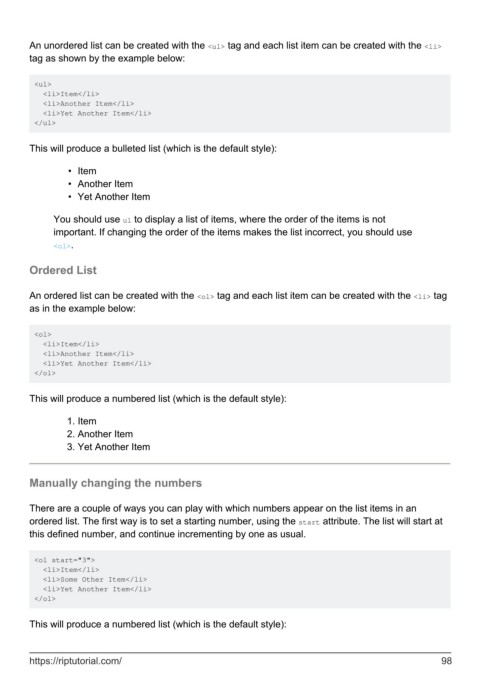 ordered list. The first way is to set a starting number, using the start attribute. The list will start at