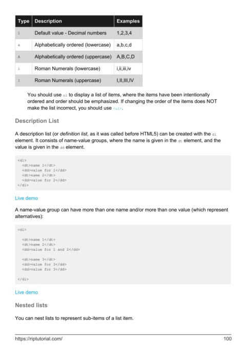 element. It consists of name-value groups, where the name is given in the dt element, and the