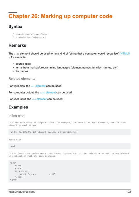 If a sentence contains computer code (for example, the name of an HTML element), use the code