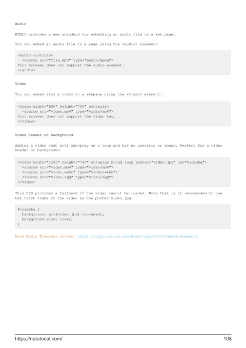Read Media Elements online: https://riptutorial.com/html/topic/2111/media-elements