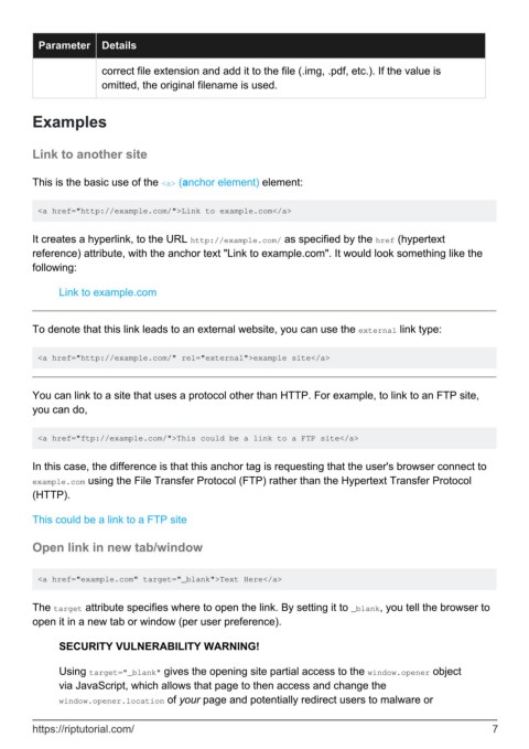 reference) attribute, with the anchor text "Link to example.com". It would look something like the