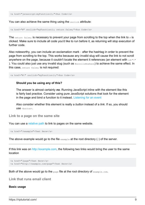 <a href="#" onclick="myFunction(); return false;">Run Code</a>