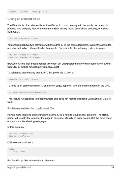 purpose is to uniquely identify the element when linking (using an anchor), scripting, or styling