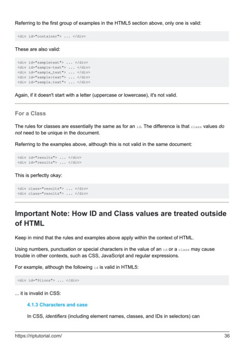 Important Note: How ID and Class values are treated outside