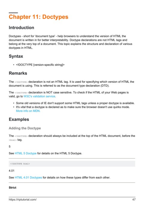 document is written in for better interpretability. Doctype declarations are not HTML tags and