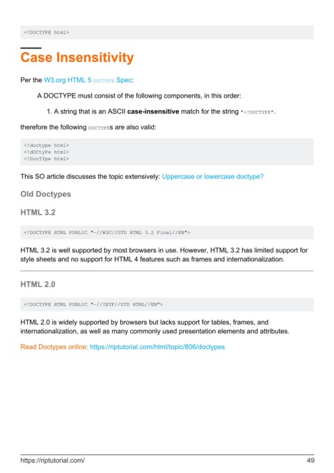 Read Doctypes online: https://riptutorial.com/html/topic/806/doctypes