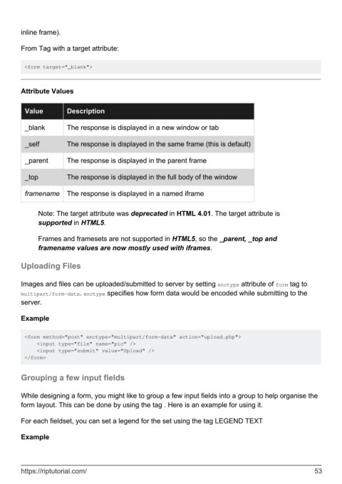 Note: The target attribute was deprecated in HTML 4.01. The target attribute is