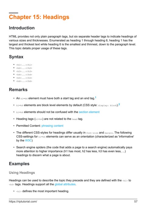 • h1–h6 elements are block level elements by default (CSS style: display: block). 2