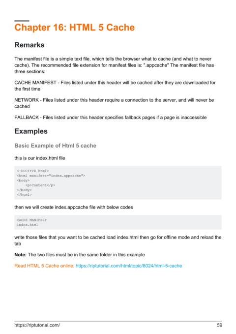 Read HTML 5 Cache online: https://riptutorial.com/html/topic/8024/html-5-cache