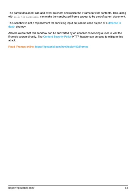 Read IFrames online: https://riptutorial.com/html/topic/499/iframes