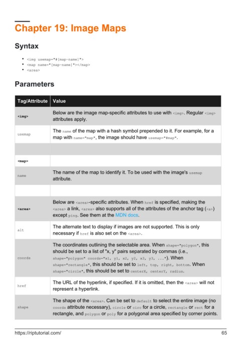 shape coords attribute necessary), circle or circ for a circle, rectangle or rect for a