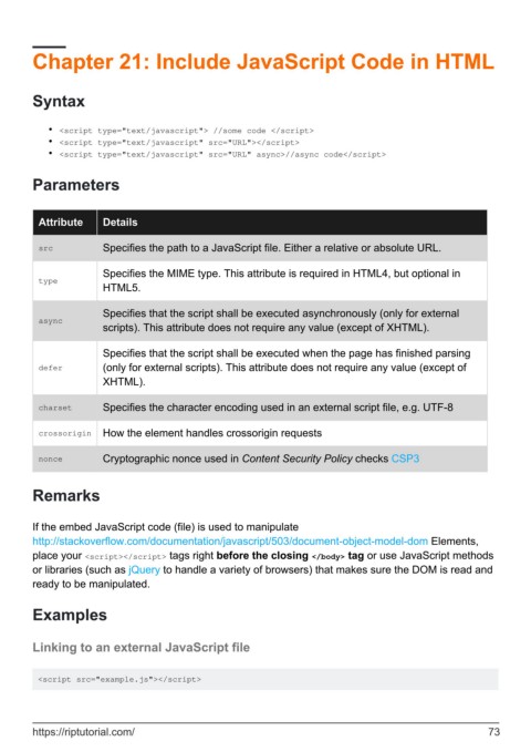 src Specifies the path to a JavaScript file. Either a relative or absolute URL.