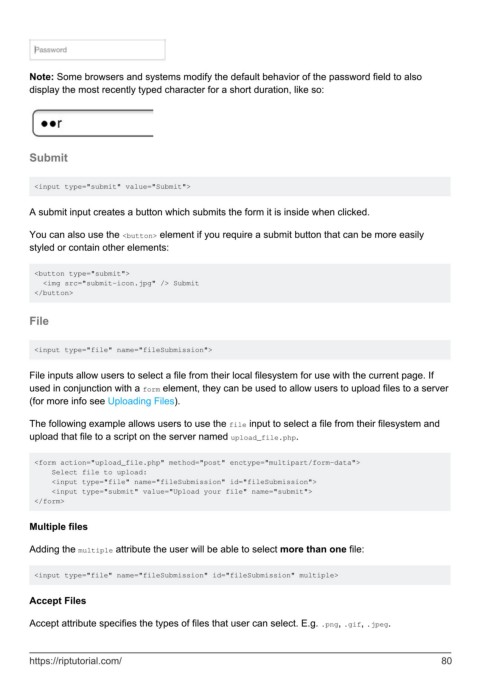 Note: Some browsers and systems modify the default behavior of the password field to also