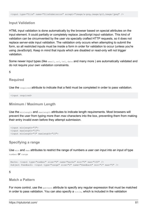 input element. It could partially or completely replace JavaScript input validation. This kind of